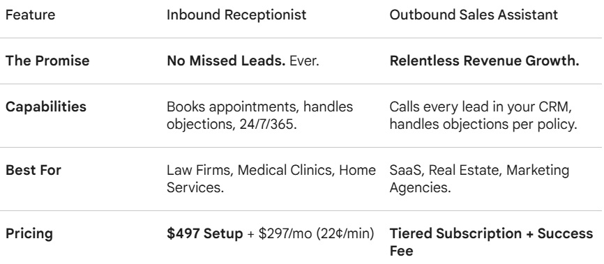 "I’m now closing deals from leads that used to go cold because we couldn't call them back fast enough. The AI Voice Agent paid for itself in 48 hours." — Growth-Minded SME Owner