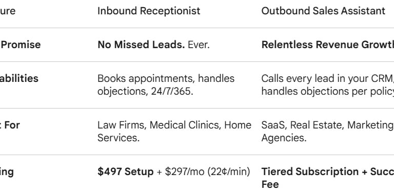 $2,500Today’s Limited-TIme Offer (AI Receptionist): $497